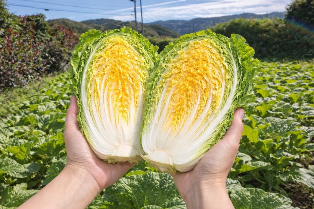 普通の白菜よりも甘みが強く、特有の青臭さがほとんどありません。 繊維も柔らかいので、お鍋に入れればとろけるような食感になります。お鍋の蓋を開けたとき、 この鮮やかなオレンジ色は、食卓を一気に華やかにしてくれます。そして何より、シャキシャキとした食感と甘みは、これまでの白菜の常識を覆します。