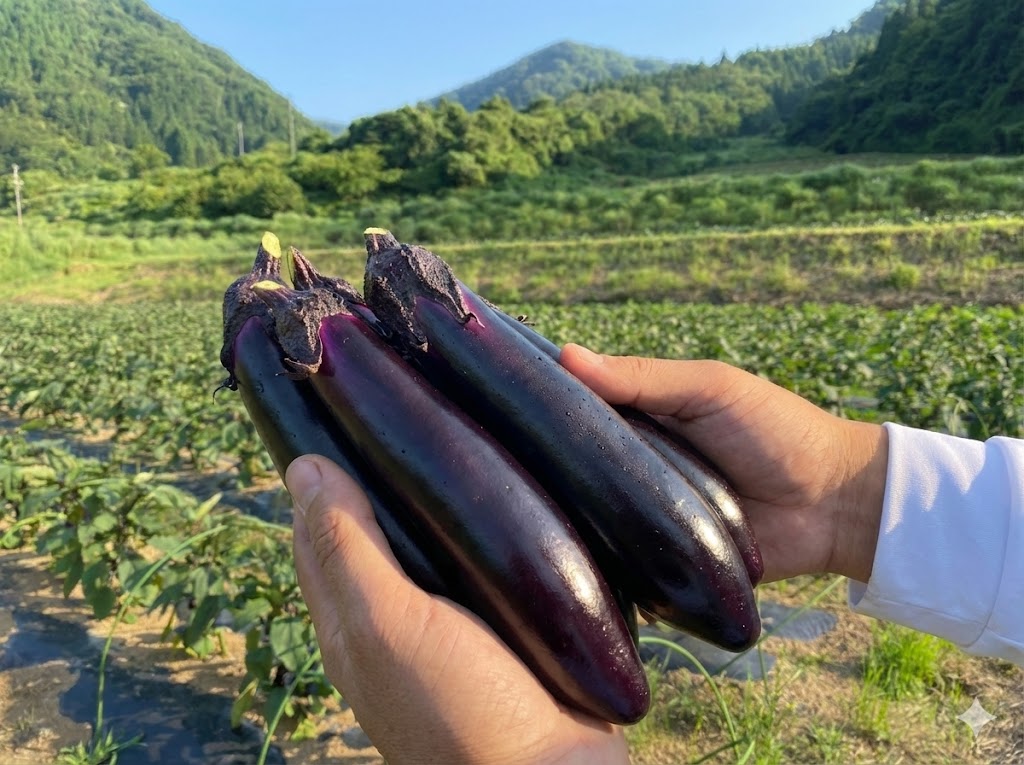千両茄子に比べて果肉がしっかりとしており、煮崩れしにくいのが特徴。また、加熱すると、なめらかな「とろみ」が生まれます。一番のおすすめは、この長さを活かした「一本焼き」や「揚げ浸し」です。 油との相性は抜群。出汁をたっぷり吸わせれば、ジュワッと溢れる旨味と、とろけるような食感に箸が止まらなくなります。